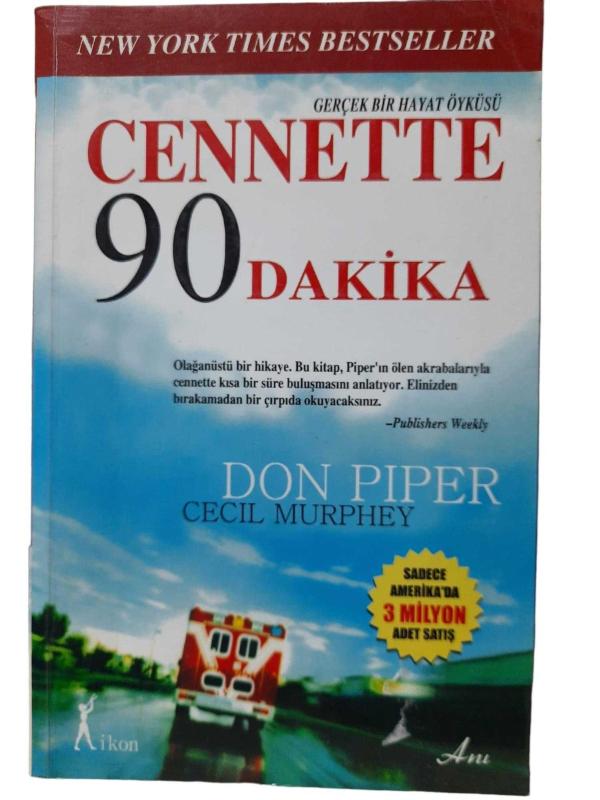 CENNETTE 90 DAKİKA, DON PİPER-CECİL MURPHEY tarafından kaleme alınmıştır. Kitap 2009 yılında İKON tarafından [İSTANBUL] yayınlanmıştır. Bu baskının çevirisi NAZAN ARIBAŞ ERBİL tarafından yapılmıştır. 232 sayfadır. Sayfa bilgisi 232 olarak belirtilmiştir. CENNETTE 90 DAKİKA adlı eser Türkçe dilindedir.