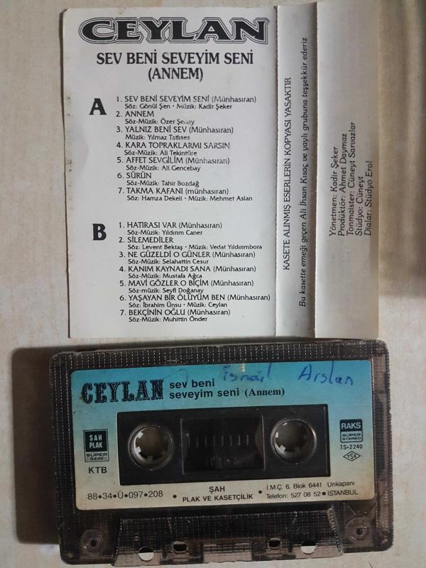CEYLAN SEV BENİ SEVEYİM SENİ ANNEM HATIRASI VAR KAĞIT BASKI başlıklı ürün, Efemera, Müzik, Sinema > Müzik, Plak, Kaset, CD > Müzik Kaseti > Yerli Müzik Kaseti kategorisi altında İkinci El olarak satılmaktadır.