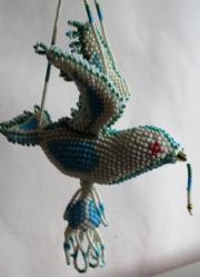 CEZA EVİ İŞİ BONCUKLU ARABA SÜSÜ KUŞ FİGÜRLÜ TÜM BOY 17 CM MAVİ BEYAZ