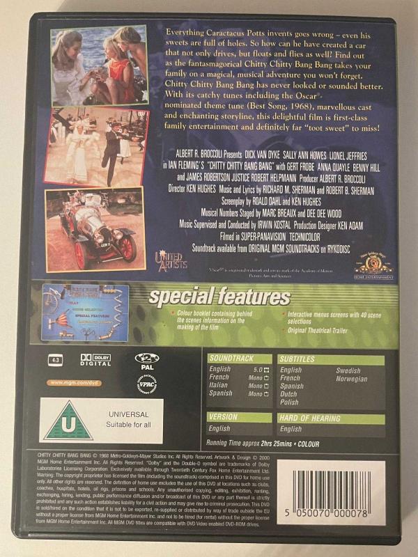 CHITTY CHITTY BANG BANG İKİNCİ EL, TEMİZCE DİL: İNGİLİZCE VE DİĞER ALTYAZI: İNGİLİZCE VE DİĞER (TÜRKÇE ALTYAZI YOKTUR) 145 DAKİKA MGM 2. BÖLGE / PAL