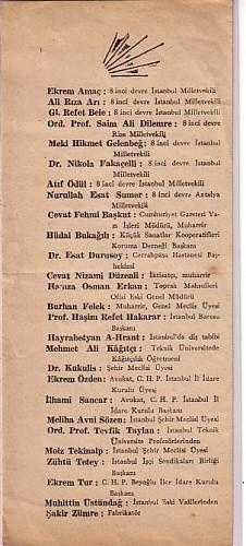 ** CUMHURİYET HALK PARTİSİ SEÇİM LİSTESİ ** Listeden birkaç önemli isim : Refet Bele,Dr.Nikola Fakaçelli,Cevat Fehmi Başkut, Burhan Felek,Dr.Kukulis ve diğerleri... Güzel bir yakın dönem efemerasıdır...