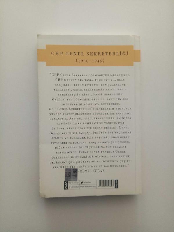 “CHP Genel Sekreterliği örgütün merkeziydi. CHP merkezinin taşra teşkilâtıyla olan karşılıklı bütün irtibâtı, yazışmaları ve temasları, genel sekreterlik aracılığıyla gerçekleştirilirdi. Parti merkezinin örgüte ilettiği genelgeler de, partinin ana istikâmetini teşkilâta duyururdu. CHP Genel Sekreterliği’nin yegâne misyonunun bundan ibâret olduğunu düşünmek ise yanıltıcı olacaktır. Aksine, genel sekreterlik, yalnızca partinin taşra teşkilâtı ve yönetimiyle irtibat içinde olan bir organ değildi. Genel Sekreterlik bir yandan, örgütün ihtiyaçlarını bilmek ve öğrenmek için teşkilâtından gelen istekleri ve soruları karşılamaya çalışırken; diğer yandan da, teşkilâtına yön vermeye çalışıyordu. Fakat bunun yanında Genel Sekreterlik, önemli bir misyonu daha yerine getirmeye çalışıyordu; bu da, toplumun çeşitli kesimleriyle temâs etmek ve bağ kurmaktı.” CEMİL KOÇAK