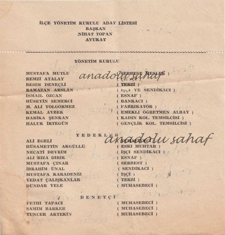 CHP İlçe Yönetim Kurulu Aday Listesi Başkan Nihat Topan ve Yönetim Kurulu, Yedekler, Denetçi Listesi [Cumhuriyet Halk Partisi Tarihi] başlıklı ürün, Efemera, Müzik, Sinema > Belge ve Evraklar > Türkçe Belgeler kategorisi altında İkinci El olarak satılmaktadır.