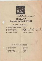 CHP İzmir Bergama İl Genel Meclisi Üyeliği Asil ve Yedek Üye Aday Listesi [Cumhuriyet Halk Partisi Tarihi]