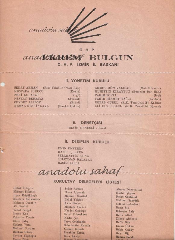 CHP İzmir İl Yönetim Kurulu ve İl Delegeleri Aday Listesi / Başkan Ekrem Bulgun [Cumhuriyet Halk Partisi Tarihi] başlıklı ürün, Efemera, Müzik, Sinema > Belge ve Evraklar > Türkçe Belgeler kategorisi altında İkinci El olarak satılmaktadır.