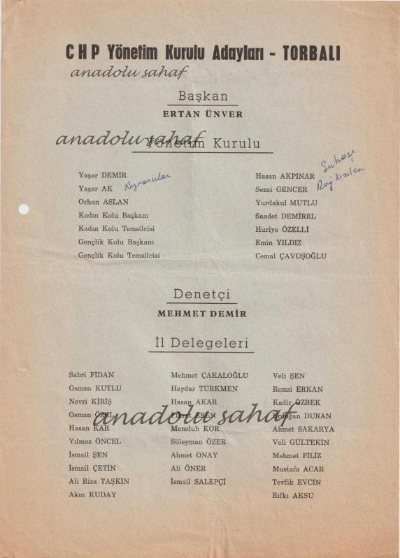 CHP İzmir Torbalı Yönetim Kurulu ve İl Delegeleri Adayları / Başkan Ertan Ünver [Cumhuriyet Halk Partisi Tarihi] başlıklı ürün, Efemera, Müzik, Sinema > Belge ve Evraklar > Türkçe Belgeler kategorisi altında İkinci El olarak satılmaktadır.