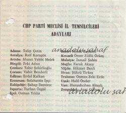 CHP Parti Meclisi İl Temsilcileri Adayları Listesi [Cumhuriyet Halk Partisi Tarihi] başlıklı ürün, Efemera, Müzik, Sinema > Belge ve Evraklar > Türkçe Belgeler kategorisi altında İkinci El olarak satılmaktadır.