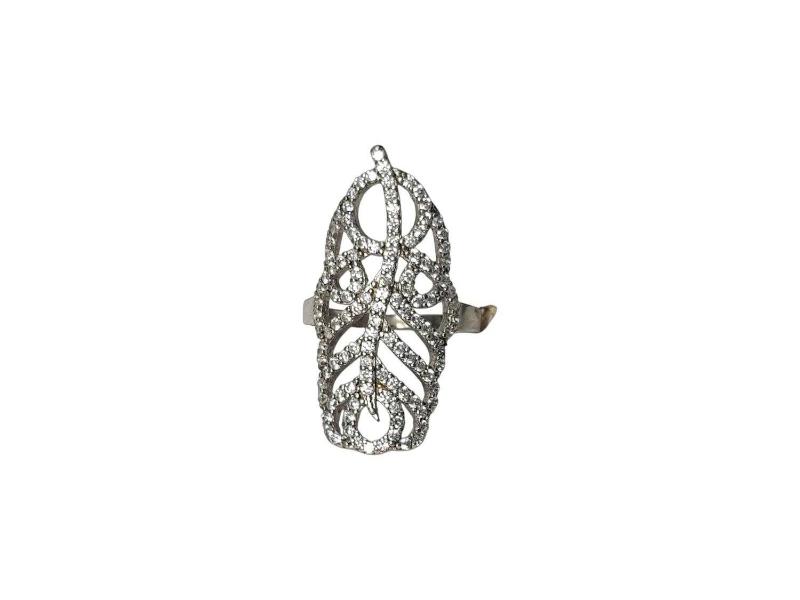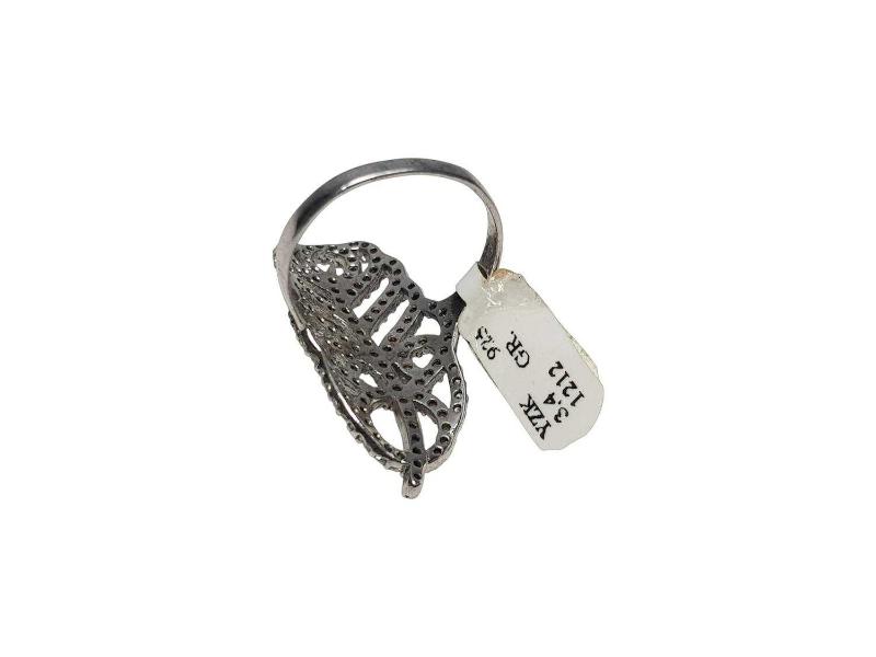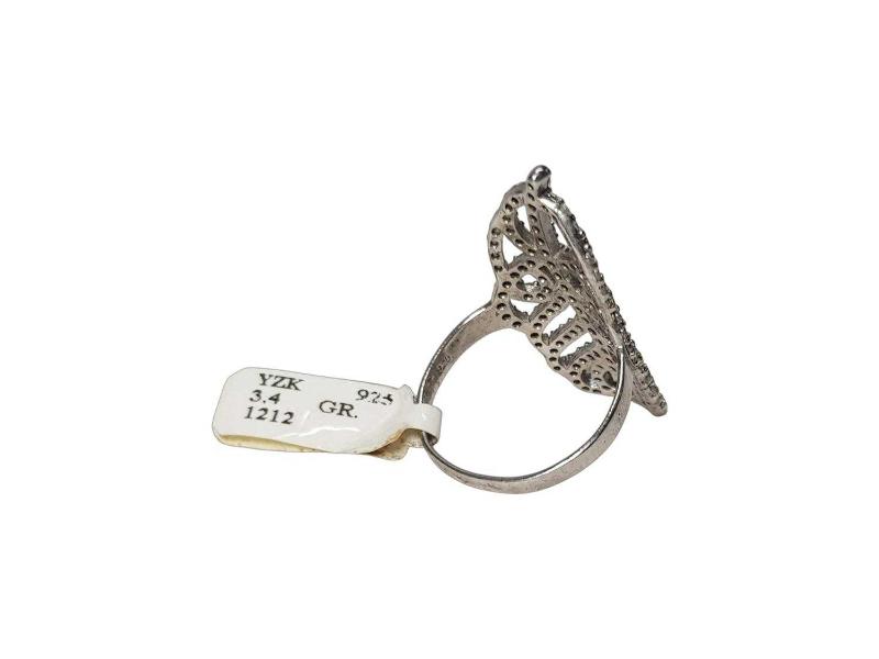 ÜZERİ ZİRKON TAŞLARLA SÜSLÜ ÇİÇEK FORMLU ABİYE GÜMÜŞ YÜZÜK. HİÇ KULLANILMAMIŞTIR. YÜZÜK NUMARASI: 16 NUMARA AĞIRLIK: 3,4 GRAM