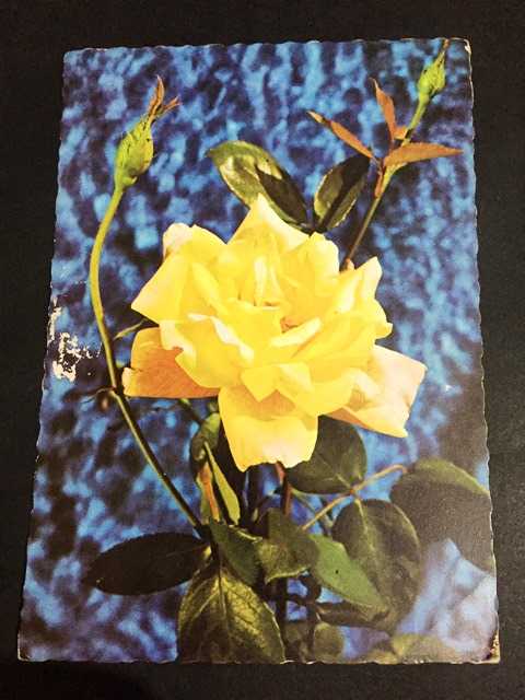 ÇİÇEK KARTPOSTALI, MAVİ FON ÜZERİNE SARI GÜL, ARKASI YAZILMAMIŞ, RENKLİ, 15 X 10 CM EBADINDA - 1950'LER, 1960'LAR, 1970'LER, 1980'LER, en son 7 ay önce güncellenmiştir.