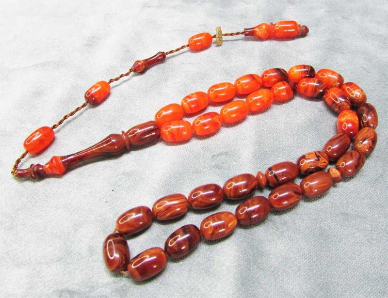 ÇİFT ReNK FULL DAMARLI KaTaLiN 33 LüK TESBİH....8x12mm başlıklı antika/koleksiyon objesi Türkiye menşe’lidir. 2000 ve sonrası dönemine aittir.