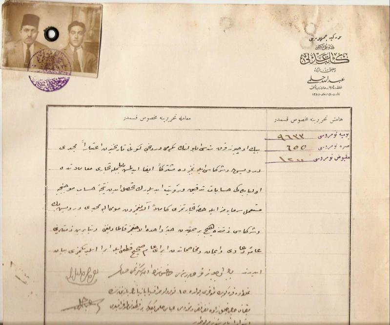 ** ÇİFTLİ FOTOĞRAFLI OSMANLICA NOTER EVRAĞI ** 41 x 25.5 cm.ebadında,çiftli fotoğraflı,Osmanlıca büyük boy noter evrağıdır...
