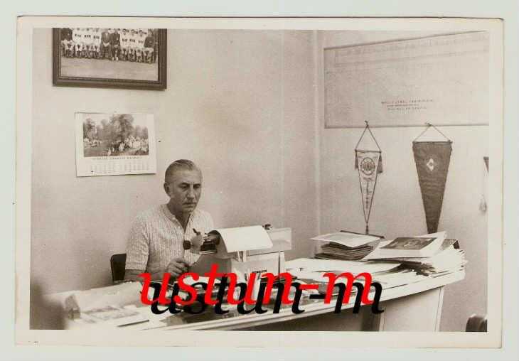 ** CİHAT ARMAN ÇALIŞMA MASASINDA ORİJİNAL ESKİ FOTOĞRAF ** Yaklaşık 18 x 12 cm.boyutunda,arkasında kaşe bulunan, gayet temiz durumda nadir ve orijinal fotoğraftır.. Cihat Arman (1919 - 14 Mayıs 1994,İstanbul),Fenerbahçe'nin ve Türkiye Milli Takımı'nın kalecilerindendir.. Türk futbolunun ve Fenerbahçe'nin gelmiş geçmiş en iyi kalecilerinden biri olarak görülmektedir...