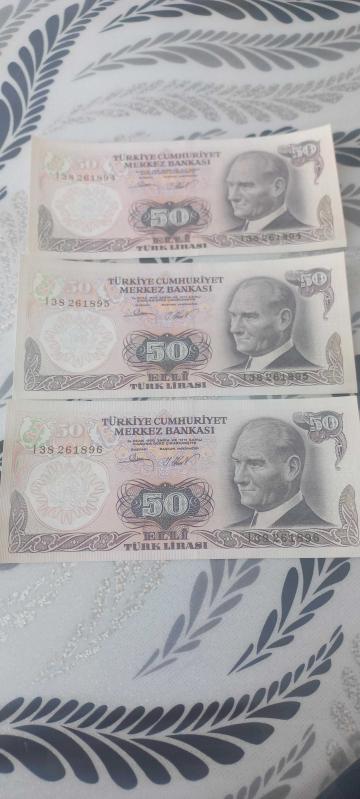ÇİL I serisi sıralı 3 adet 50 Türk lirası 1.tertip başlıklı ürün, Efemera, Müzik, Sinema > Nümismatik, Para, Madalya > Kağıt Paralar > Cumhuriyet Dönemi > 6. Emisyon kategorisi altında İkinci El olarak satılmaktadır.