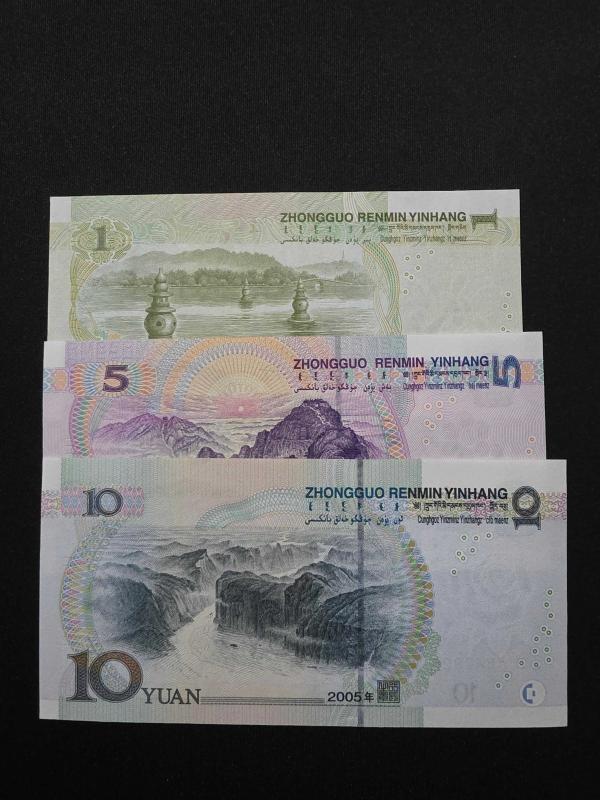 ÇİN, 1-5-10 YUAN 199/2005, ÇİL/ÇÇT Toplam 3 Banknot (1 YUAN ÇÇT), bir ay önce satışa sunulmuştur.