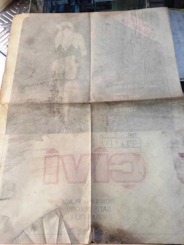 Sattığımız afiş / posterler dönemine ait orijinal ürünlerdir. Fotoğraflarda kondisyonları görebilirsiniz., Kondisyonlar temiz durumdadır. Aksi bir durum olduğunda ilave fotoğraf ve bilgi yer alacaktır. Kondisyon: Fotoğrafta görüldüğü gibi, alt tarafta yırtılma nedeniyle şeffaf bantla onarılan bir bölüm vardır. Genel durumu temizdir.