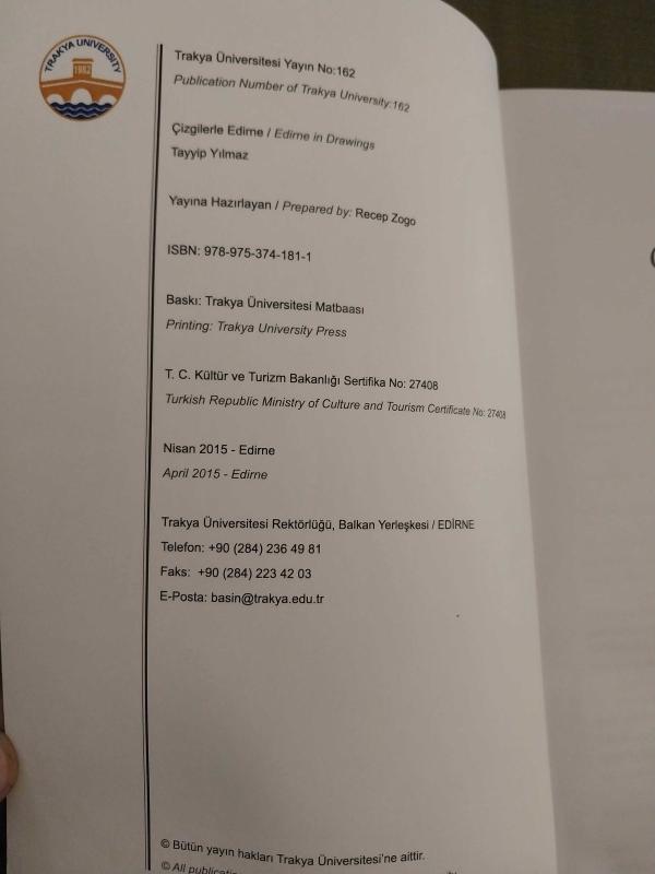 ÇİZGİLERLE EDİRNE - EDİRNE IN DRAWINGS, Tayyip Yılmaz tarafından kaleme alınmıştır. Kitap 2015 yılında Trakya Üniversitesi tarafından [Edirne ] yayınlanmıştır. Satışta olan kitap, yayınevinin 1. baskısıdır. ÇİZGİLERLE EDİRNE - EDİRNE IN DRAWINGS adlı eser Türkçe dilindedir.