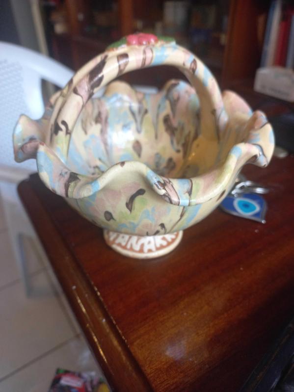 ÇOK ESKİ ÇANAKKALE AKITMA SIRLI TOPRAK ŞEKERLİK. GAYET İYİ KONDİSYONDA. KIRIK VEYA ÇATLAĞI BULUNMUYOR. başlıklı antika/koleksiyon objesi Türkiye menşe’lidir. 1940-1959 arası dönemine aittir.