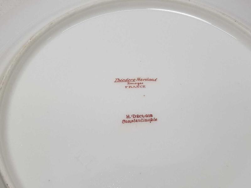 OSMANLI DÖNEMİ HAVİLAND LIMOGES VE DÖNEMİN ÜNLÜ İSTANBULLU TÜCCARI H. DECUGIS CONSTANTINOPLE DAMGALI PORSELEN TABAK. ÇAP: 24,5 CM