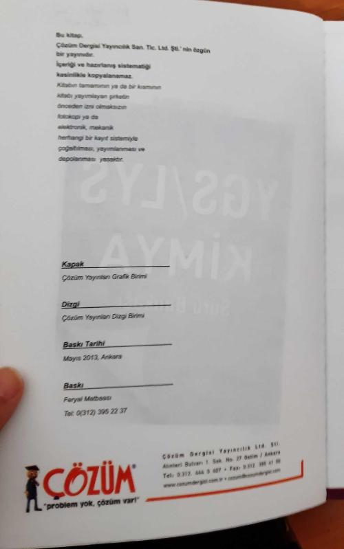 Kitap 2013 yılında ÇÖZÜM YAYINLARI tarafından yayınlanmıştır. 320 sayfadır. ÇÖZÜM YAYINLARI, YGS-LYS KİMYA SORU BANKASI adlı eser Türkçe dilindedir.