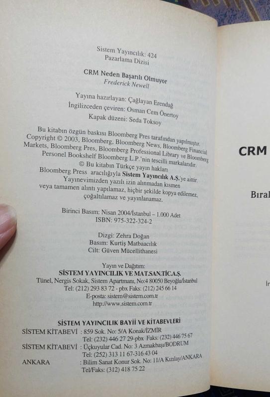 CRM NEDEN BAŞARILI OLMUYOR BIRAKIN İLİŞKİYİ MÜŞTERİNİZ YÖNETSİN FREDERİCK NEWELL SİSTEM YAYINCILIK 2004 268 SAYFA KULLANILMAMIŞTIR