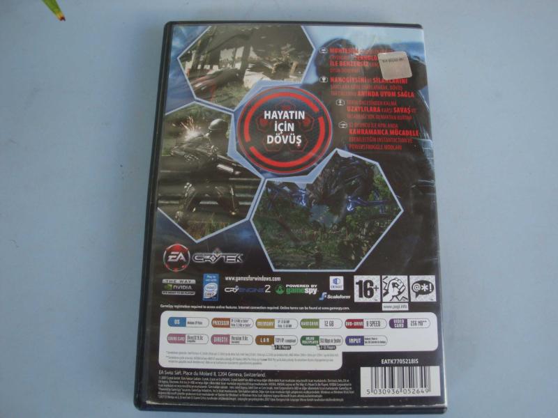 " CRYSIS " PC DVD-ROM OYUN " Ürün 2. Eldir , Disk de çok hafif kılcal izler mevcut olup sorunsuz oynanabilmektedir "
