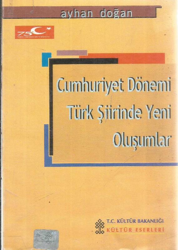 CUMHURİYET DÖNEMİ TÜRK ŞİİRİNDE YENİ OLUŞUMLAR, AYHAN DOĞAN tarafından kaleme alınmıştır. Kitap 1999 yılında KÜLTÜR BAKANLIĞI tarafından [ANKARA] yayınlanmıştır. 306 sayfadır. CUMHURİYET DÖNEMİ TÜRK ŞİİRİNDE YENİ OLUŞUMLAR adlı eser Türkçe dilindedir.