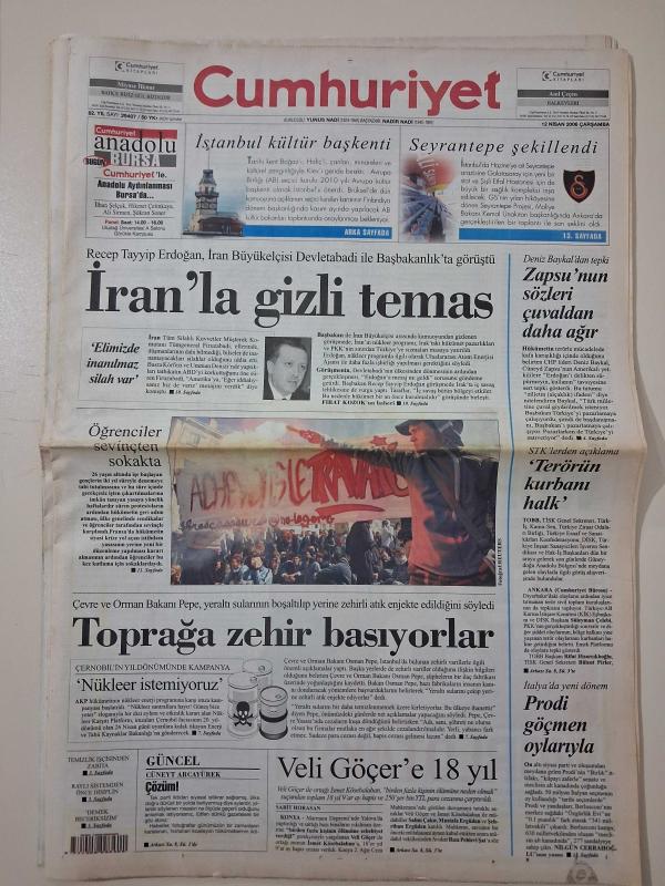 Kitap 2006 yılında CUMHURİYET tarafından [İSTANBUL] yayınlanmıştır. 20 sayfadır. CUMHURİYET GAZETESİ 12 Nisan 2006 Çarşamba ( İRAN'LA GİZLİ TEMAS / TOPRAĞA ZEHİR / İTALYAN SOLU'NUN KIL PAYI ZAFERİ ) adlı eser Türkçe dilindedir.