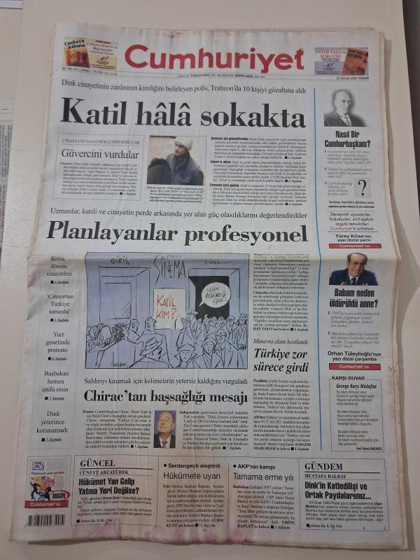 CUMHURİYET GAZETESİ 21 Ocak 2007 Pazar ( DİNK CİNAYETİ haberleri / İSTANBUL B. FENERBAHÇE 0-5 / YADİGAR Türkü Gibi Yaşamak ) adlı eser, Kitap > Süreli Yayınlar > Gazeteler > Türkiye > Genel > Günlük kategorisinde İkinci El olarak satıştadır.