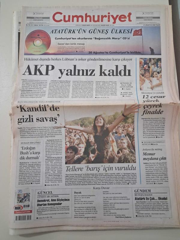 Kitap 2006 yılında CUMHURİYET tarafından [İSTANBUL] yayınlanmıştır. 20 sayfadır. CUMHURİYET GAZETESİ 27 Ağustos 2006 Pazar ( AKP YALNIZ KALDI / KANDİL'DE GİZLİ SAVAŞ / DEMİR DEMİRKAN / GALATASARAY KAN KAYBEDİYOR ) adlı eser Türkçe dilindedir.
