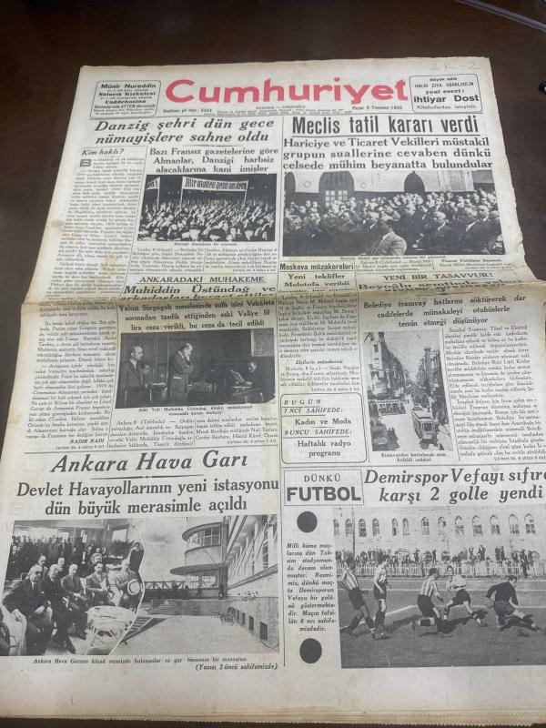 CUMHURİYET GAZETESİ-9 TEMMUZ 1939-HALİD ZİYA UŞAKLIGİL YENİ ESERİ İHTİYAR DOST -DANZİG ŞEHRİ NÜMAYİŞLERE SAHNE OLDU-DEMİRSPOR VEFA SPOR adlı eser, Kitap > Süreli Yayınlar > Gazeteler > Türkiye > Genel > Günlük kategorisinde İkinci El olarak satıştadır.