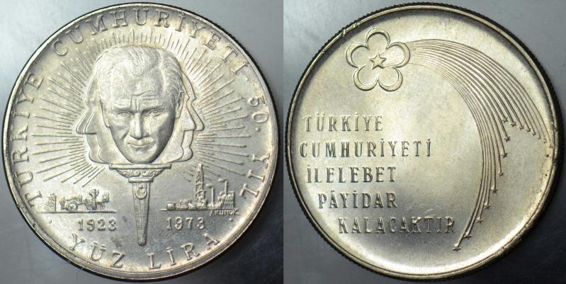 CUMHURİYET'İN 50. YILI 100 LİRA 1973 GÜMÜŞ 22 gr. ÇİLALTI+, en son bir ay önce güncellenmiştir.