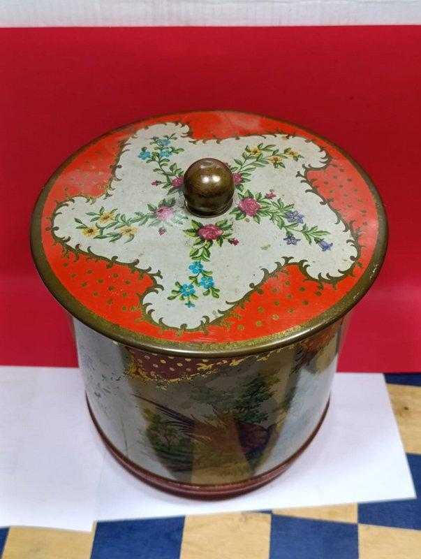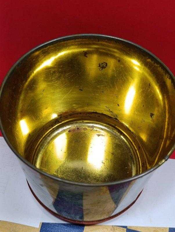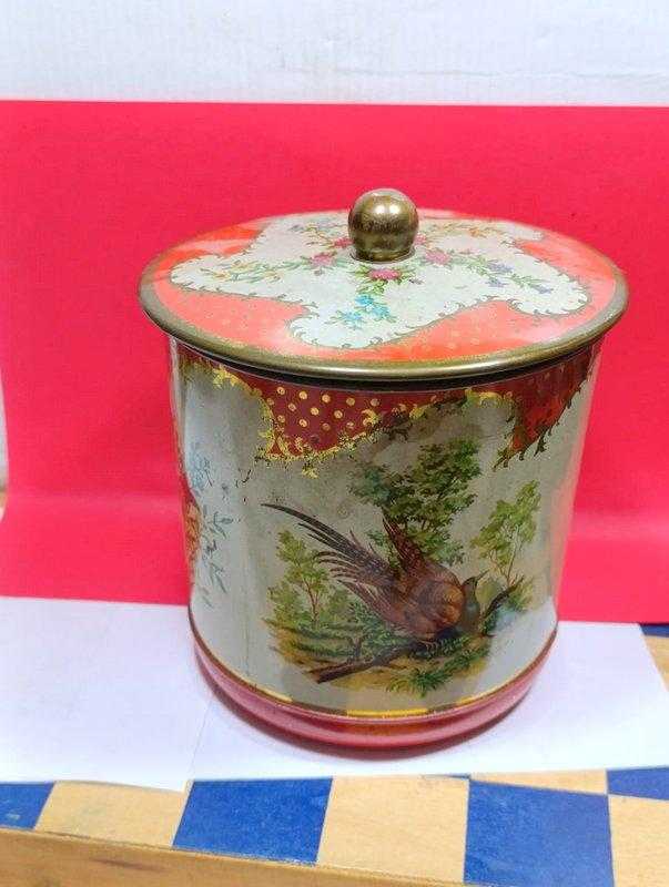 ÇY3----ALMAN TENEKE KAHVE KUTUSU başlıklı antika/koleksiyon objesinin menşei belirtilmemiştir. Objenin ait olduğu dönem bilinmeketedir.