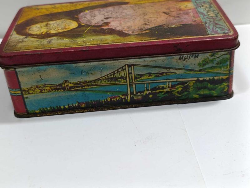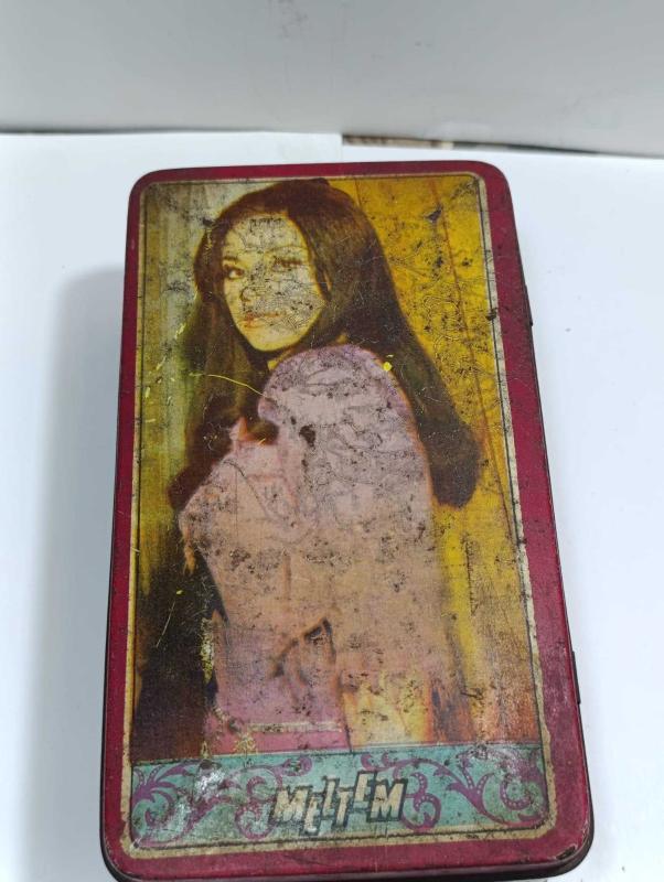 ÇY9------SANATÇI GÖRSELLİ KAPAK TENEKE MELTEM CİKLET KUTUSU başlıklı antika/koleksiyon objesinin menşei belirtilmemiştir. Objenin ait olduğu dönem bilinmeketedir.