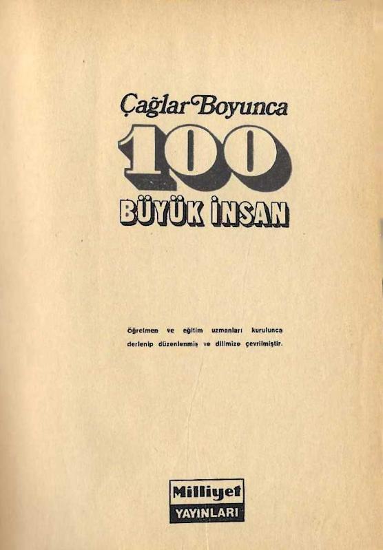 Kitap 1971 yılında Milliyet Yayınları tarafından [İstanbul] yayınlanmıştır. 856 sayfadır. Çağlar boyunca 100 büyük insan (ciltli) adlı eser Türkçe dilindedir.