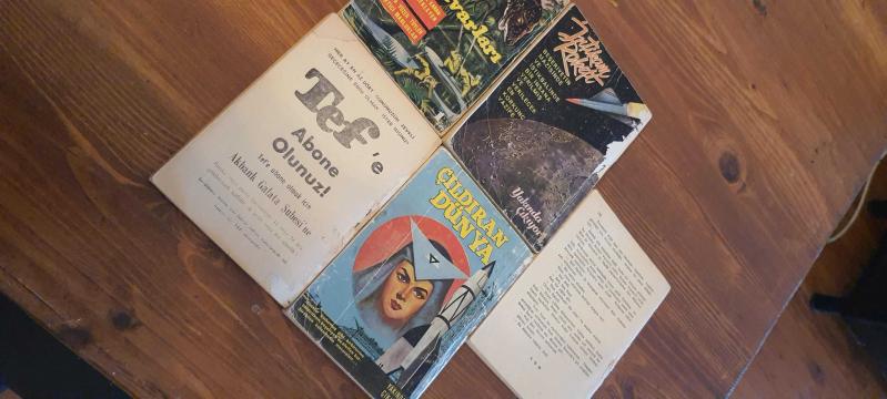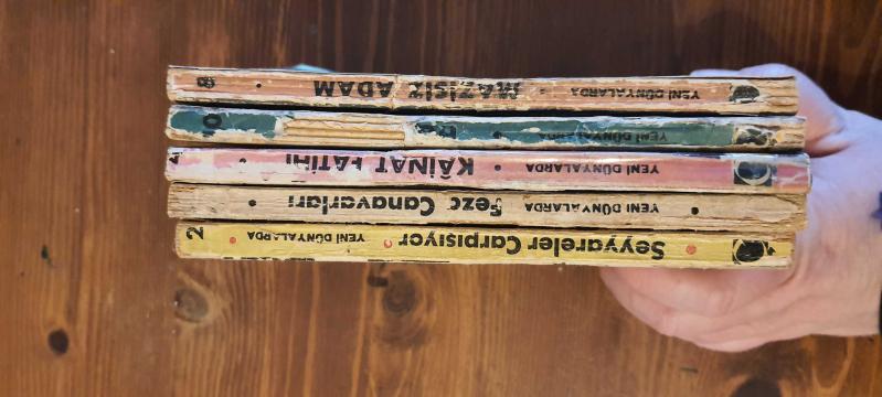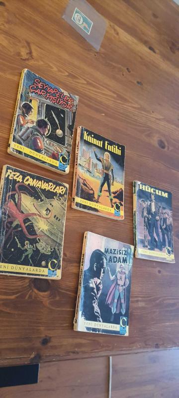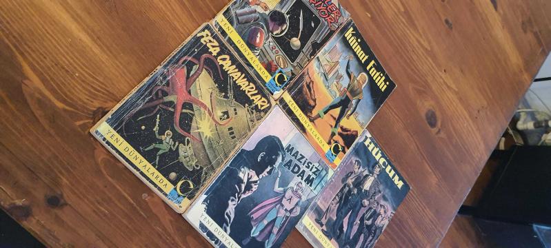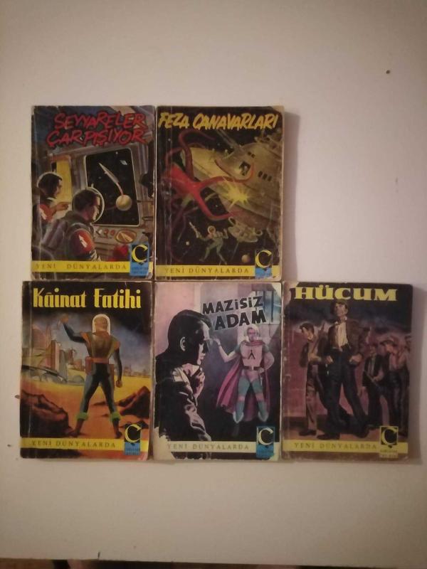 Çağlayan yayınevi yeni dünyalarda serisi 2-3-4-8-10 2- seyyareler çarpışıyor çok iyi durumda 3- feza canavarları içi iyi durumda ön kapak fotokopi, arka kapak yok 4- çok iyi durumda 8- içi iyi durumda ön kapak fotokopi, arka kapak sağlam 10- içi iyi durumda ön kapak fotokopi, arka kapak yok