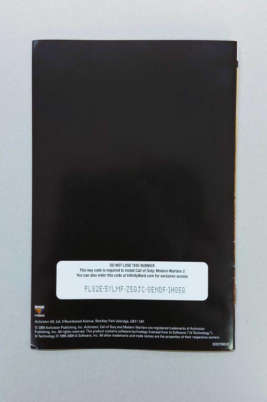 2009 yılında EA Games'in piyasaya sürdüğü Call of Duty Modern Warfare 2 oyunu. Kutu içeriği eksiksizdir. Oyunun ana kitapçığının yanı sıra bir de broşür mevcuttur. İki disk bulunmaktadır. Diskler temizdir. Oyun kodu tek seferlik bir kod olduğu ve bu kod kullanıldığı için oyunu oynayamazsınız. Sadece koleksiyon amacı ile alabilirsiniz. Call of Duty hayranları için son derece nadir bir parçadır.