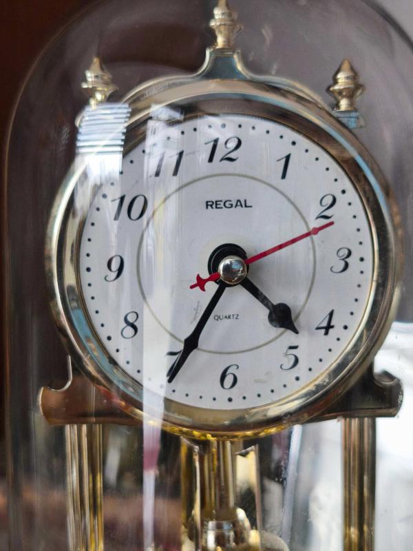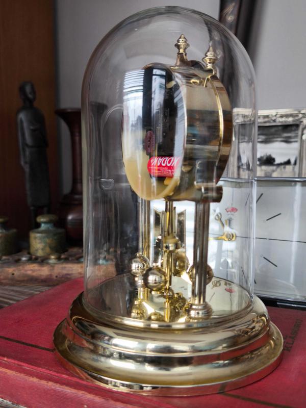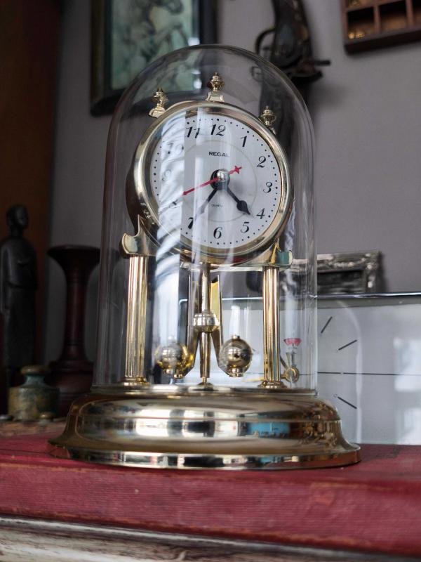 Sağlam çalışır durumda. Alt kısım aktif dönmekte eksiksiz cam fanusunda. ( plastik değil !! ) Şık bir masa saati.