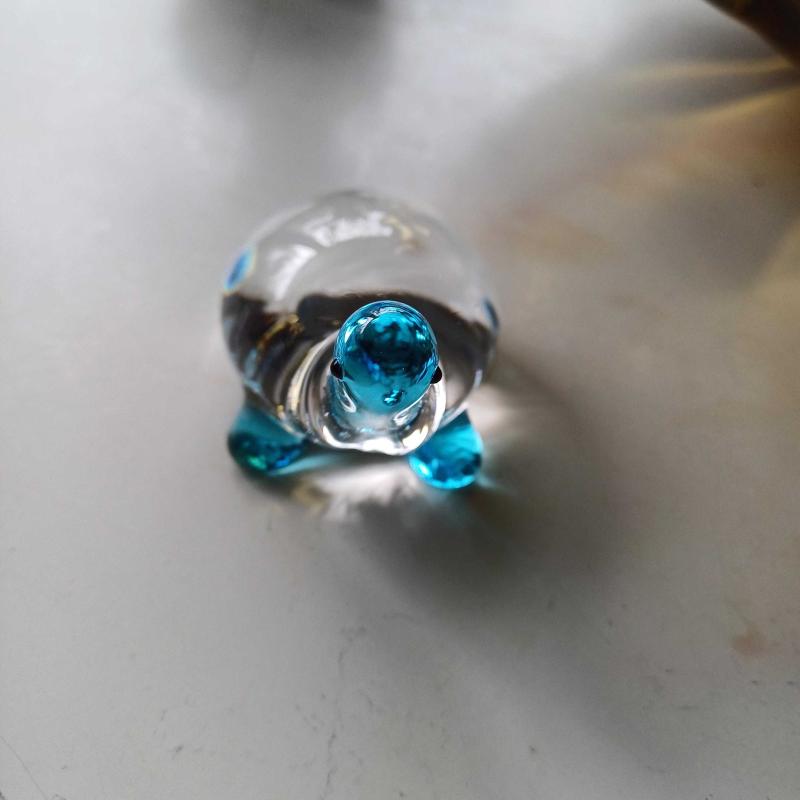 Pasabahçe cam kaplumbağa. Mavi renkte. Üzerinde etiketi mevcut. Kusursuz.