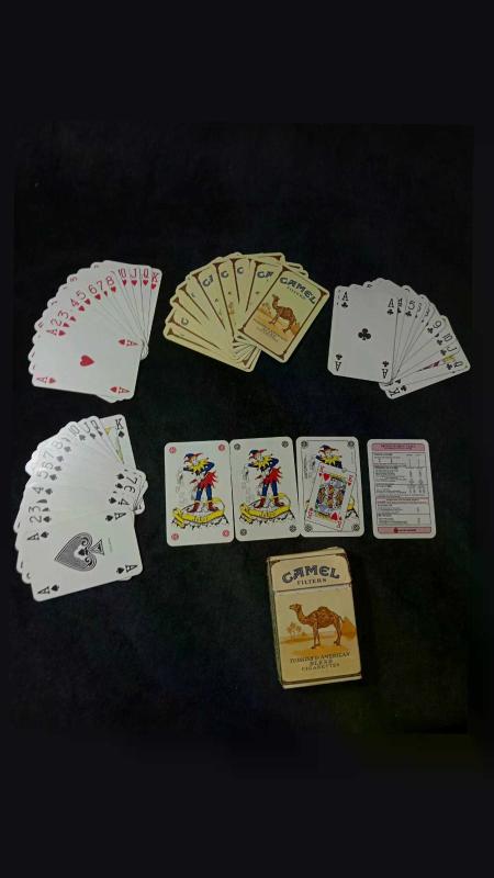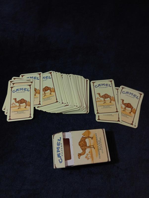 Camel sigara Temalı iskambil Oyun Kartları Seti vintage. Camel temalı kutusunda, koyu camel renklerde standart oyun kartları ve jokerler içeren oyun seti. 56 kart ve kutusundan oluşmakta çok iyi durumda, en son bir ay önce güncellenmiştir.