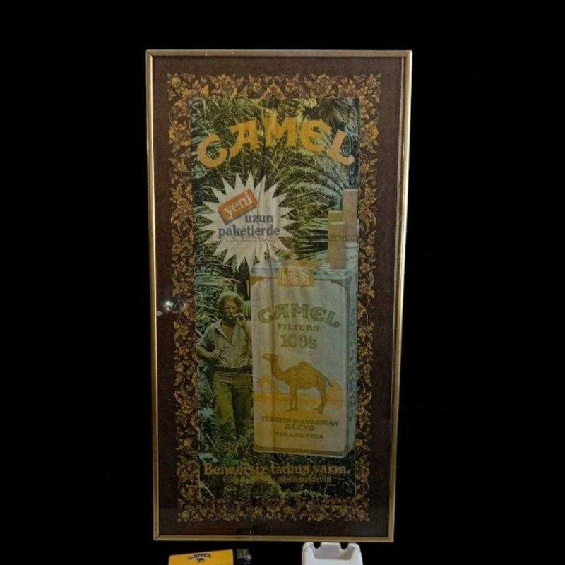 Camel sigara reklamı çerçeve büyük boy başlıklı antika/koleksiyon objesi Türkiye menşe’lidir. 2000 ve sonrası dönemine aittir.
