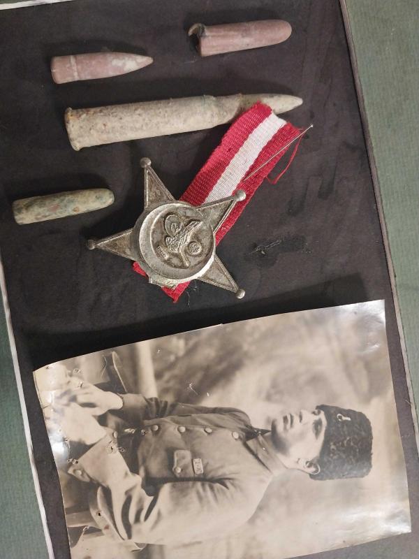 Çanakkale Savaşı Asker Fotoğrafı ve İkinci Üretim Birinci Dünya Savaşı Harp Madalyası ile Dekorluk Çanakkale Hatıraları.