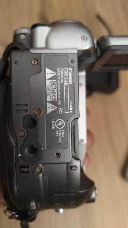 Canon'un DC40 model video kamerası. Mini DVD'ye kayıt yapar. Kamerayla birlikte WL-D86 kumanda ve bir de yan sanayi şarj chazı var. Kamerayı test etmek mümkün olmamıştır, çünkü pili cihaz daha açılır açılmaz bitmektedir. Fakat cihazın en azından açılır durumda olduğu anlaşılmaktadır. Cihazın şu anda yeni bir pile ihtiyacı var. Pil numarası BP-208, açılır kapanır LCD panelin altına monte edilen slim bir pil.