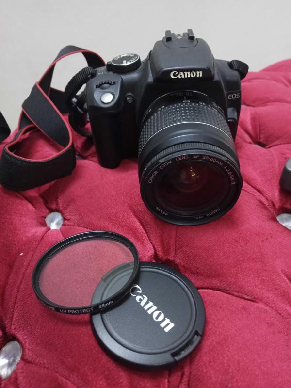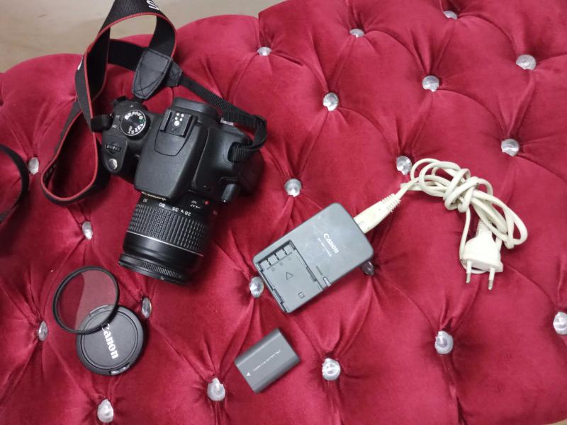 Canon EOS 350D fotoğraf makinesi set halinde satılıktır. Makine sorunsuz çalışmaktadır. 18–55mm kit lens ile birlikte verilecektir. Batarya, orijinal Canon şarj aleti, lens kapağı ve filtre mevcuttur. Kozmetik durumu fotoğraflarda görüldüğü gibidir.