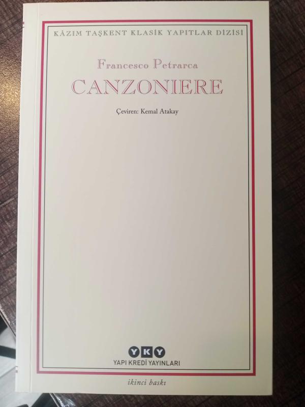 Canzoniere, Francesco Petrarca tarafından kaleme alınmıştır. Kitap 2021 yılında Yapı Kredi Kültür Sanat Yayıncılık tarafından [İstanbul] 975080435X ISBN kodu ile yayınlanmıştır. Satışta olan kitap, yayınevinin 2. baskısıdır. Bu baskının çevirisi Kemal Atakay tarafından yapılmıştır. Canzoniere adlı eser Türkçe dilindedir.