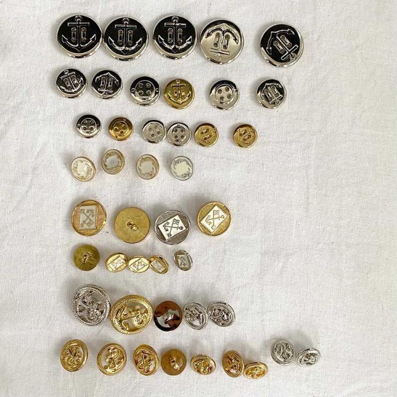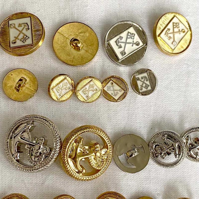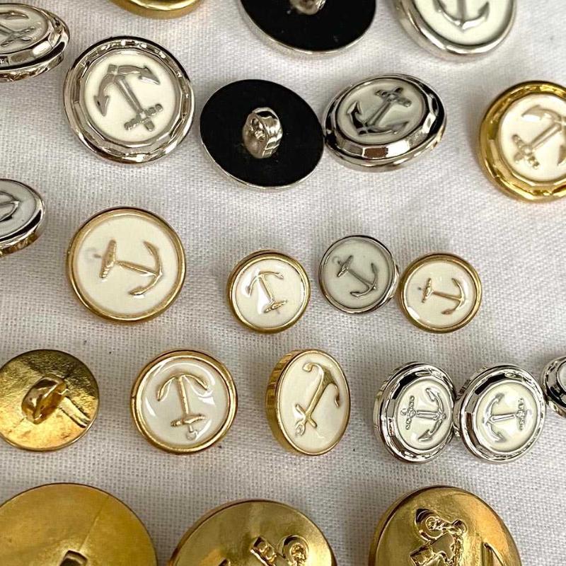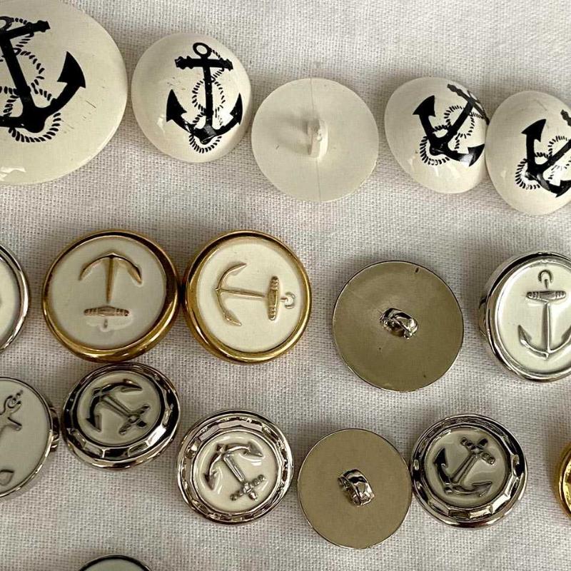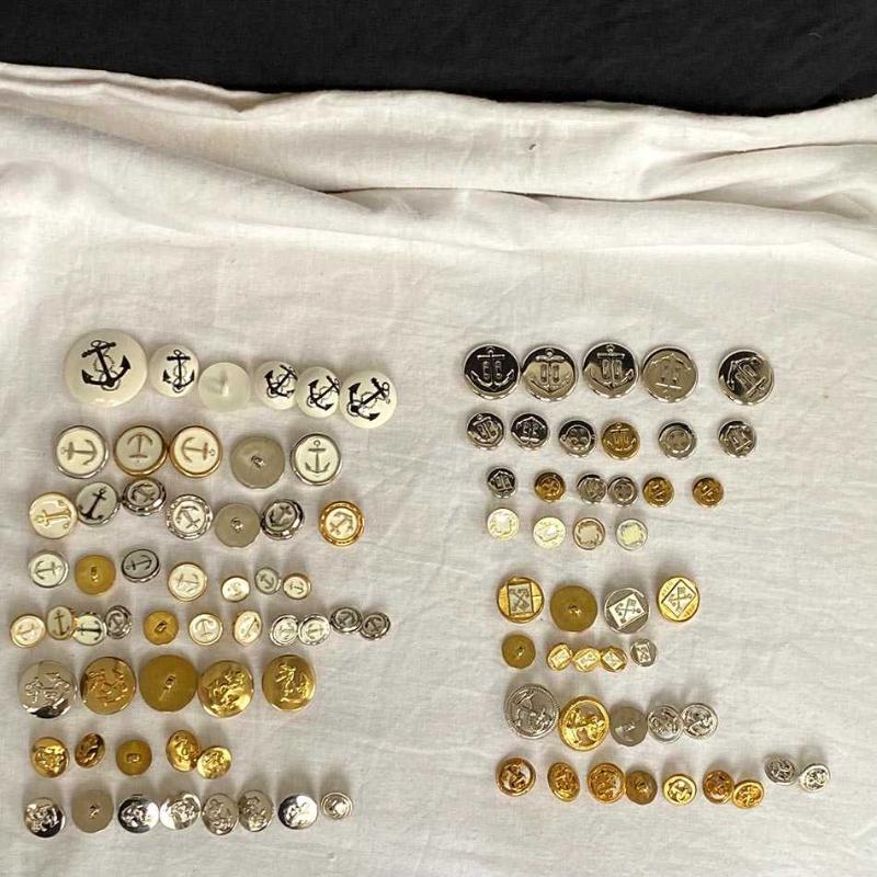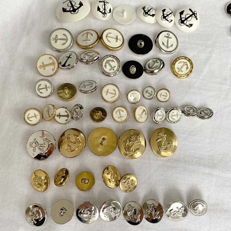 Toplam 98 adet, çapa logolu denizcilik temalı düğme. Çeşitli renk ve formlardaki düğmeler 1 ila 2.5 cm arası boylardalar. Düğmeler yeni ve iyi durumdadır. 120 gr