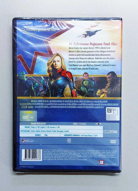 2019 yılında vizyona giren Captain Marvel filmi. Film ambalajındadır, üretildiği yıldan bu yana -yaklaşık 7 yıldır- hiç açılmamıştır. ''Yeni Film'' tarafından basılan orijinal Türkçe baskıdır. Film, dijitalleşme çağında vizyona girdiği ve o yıllarda artık disk dönemi Türkiye'de yavaşça sonlandığı için pek çok film DVD olarak basılmamıştır. Bu sebeple son derece nadirdir. Türkçe altyazı ve dublaj seçeneklerinin yanı sıra orijinal dil seçenekleride mevcuttur. Marvel Sinematik Evreni'nin DVD film koleksiyonunu yapanlar için eşsiz bir parçadır.