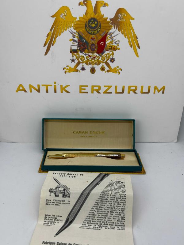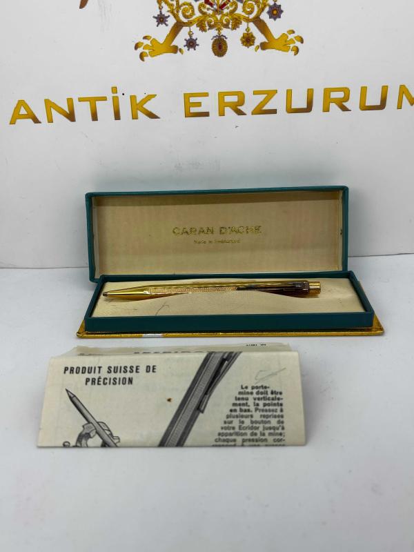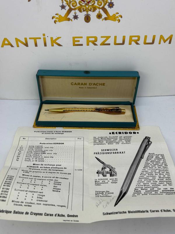 1970’lerden Bir İsviçre Efsanesi: Caran d'Ache Ecridor (0.7 mm) Koleksiyonerlerin gözdesi, İsviçre mühendisliğinin zirvesi! 1970’li yılların zarafetini günümüze taşıyan bu altın kaplama Caran d'Ache Ecridor, hem prestijli bir imza kalemi hem de eşsiz bir yatırım parçasıdır. Neden Bu Kalemi Almalısınız? • Tam Set: Nadir bulunan orijinal vintage kutusu ve döneme ait tanıtım kitapçığı ile birlikte eksiksiz. • 0.7 mm Hassasiyet: Hem günlük notlar hem de teknik çizimler için ideal, en çok tercih edilen uç kalınlığı. • İkonik Tasarım: Markanın imzası olan altın kaplama altıgen gövde; ergonomi ve lüksün mükemmel uyumu. • Vintage Değer: Yarım asırlık geçmişiyle, "Swiss Made" kalitesinin en saf halini temsil eden gerçek bir koleksiyon objesi Özetle: Kusursuz işçilik, 0.7 mm uç performansı ve 1970'lerin nostaljik lüksü tek bir gövdede.