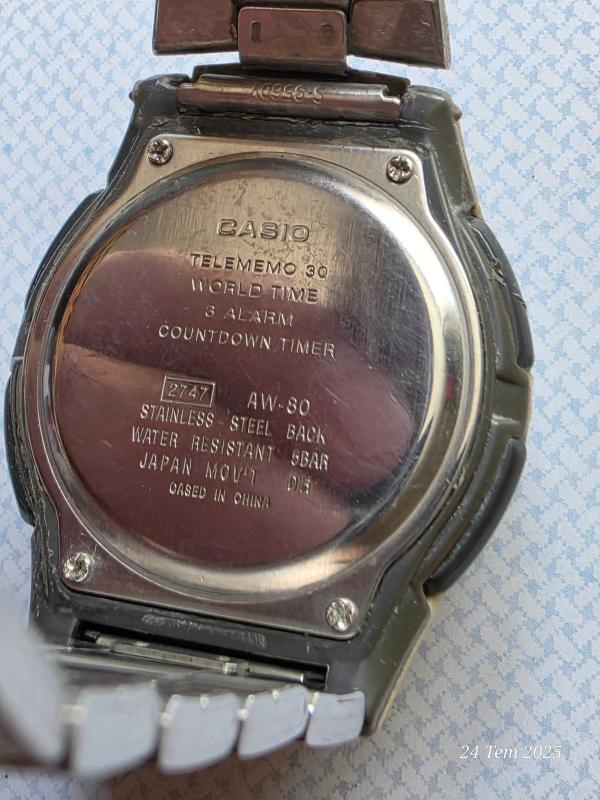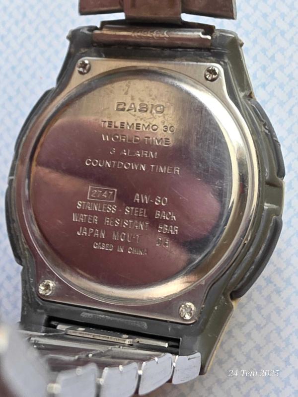 Casio kol saati TELEMEMO 30 AW80 3 ALARM DÜNYA SAATİ başlıklı antika/koleksiyon objesi Avrupa menşe’lidir. Objenin ait olduğu dönem bilinmeketedir.