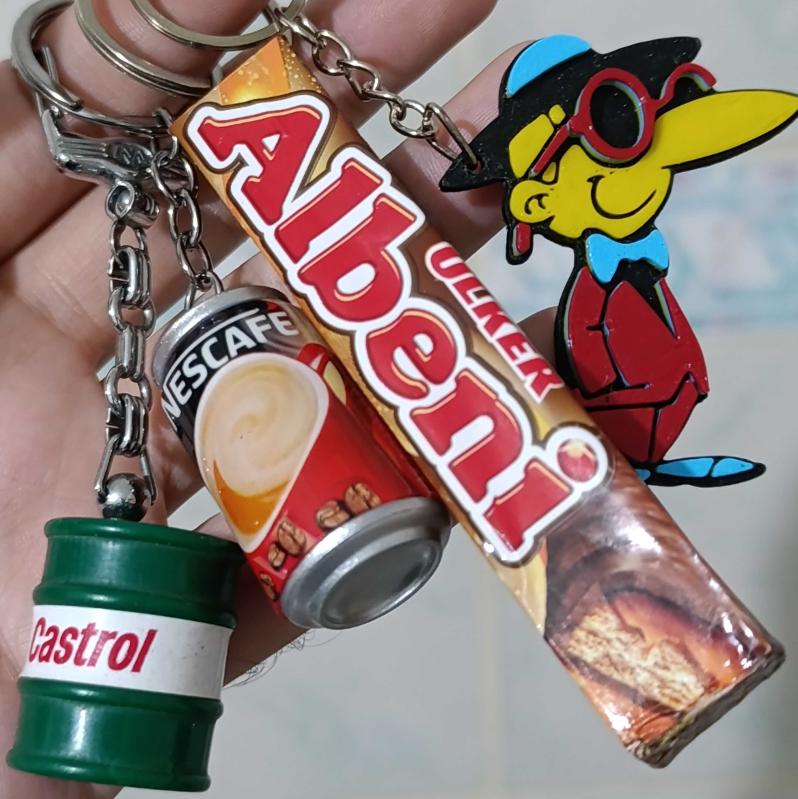 Castrol kutu Nescafe TipiTip Ülker albeni gofret çikolata anahtarlık süs set koleksiyon nostalji tasarım dekor hediye vintage retro hobi reklam promosyon minyatür diorama