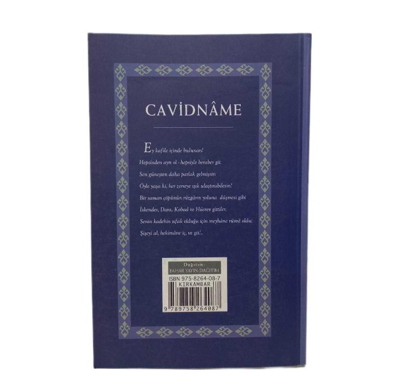 Cavidname, Muhammed İkbal tarafından kaleme alınmıştır. Kitap 2008 yılında KIRK AMBAR YAYINLARI tarafından 9789756698204 ISBN kodu ile yayınlanmıştır. Bu baskının çevirisi Halil Toker tarafından yapılmıştır. 448 sayfadır. Cavidname adlı eser Türkçe dilindedir.